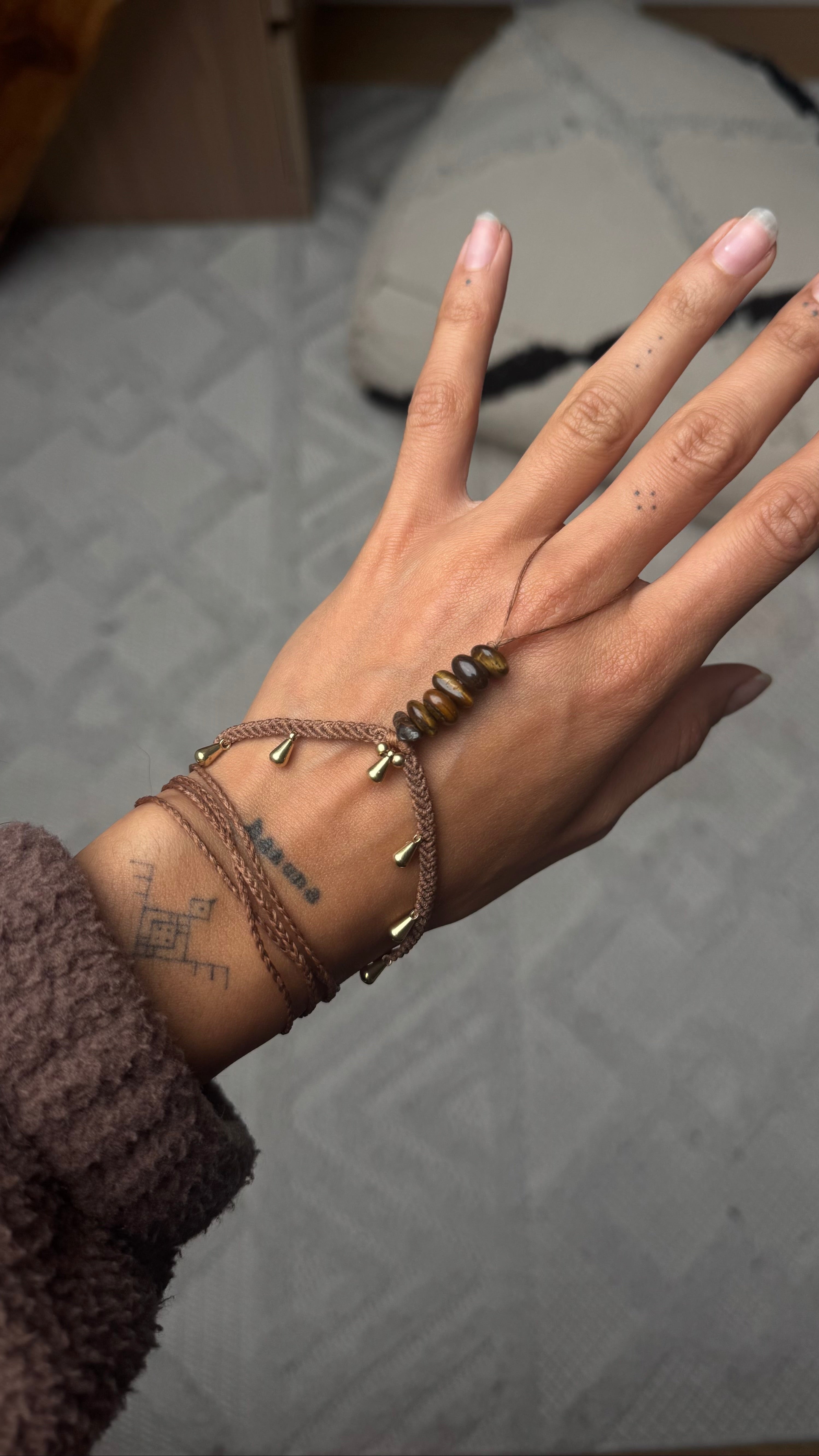Colliers, bijoux de corps, harnais ou bijoux de ventre… Chaque création naît entre mes mains, avec des matériaux bruts et naturels comme le cuir, les pierres ou le fil ciré.